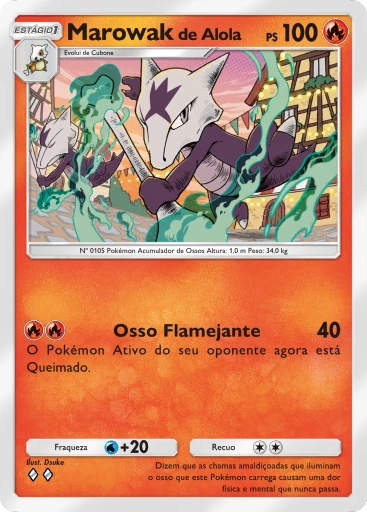 Este Pokémon usa o crânio de sua falecida mãe. Às vezes, os sonhos de Cubone o fazem chorar, mas cada lágrima que derrama só o torna mais forte.